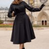 ”Meet me under the falling leaves!” Deze lange mantel is niet alleen prachtig om te zien, maar houdt je ook nog eens heerlijk warm omdat ze is uitgevoerd in een hoge kwaliteit, 100% wol (stretcht niet) in donkerblauw en tevens volledig is gevoerd met een gestreept satijnachtig stofje. * Gevoerd * Puntige kraag * Knopenrij * Afneembare strikband voor extra ‘snatched’ taille * Voorzien van zakken! * Ava is 1,69 m  * Valt over de knie bij een lengte van 1,70 m