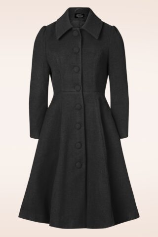 “Dark, dramatic, and ready to wow!” Met deze swing jas maak je gegarandeerd een statement, waar je ook gaat. Ze heeft een elegant en vrouwelijk swingmodel met een puntige kraag en grote stoffen knopen. Uitgevoerd in een stevige maar soepele stofmix (zonder stretch) in classy zwart, die je wintergarderobe meteen een chique boost geeft. Stijlvol, speels en onweerstaanbaar! * Swing stijl * Puntige kraag * Knopenrij  * Volledig gevoerd * Valt over de knie bij een lengte van 1,70 m * Exclusief bij Topvintage verkrijgbaar