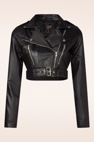 Topvintage exclusive ~ Liana Faux Leather blazer in zwart