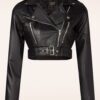 • Riley cropped leren biker jack in zwart €199,95