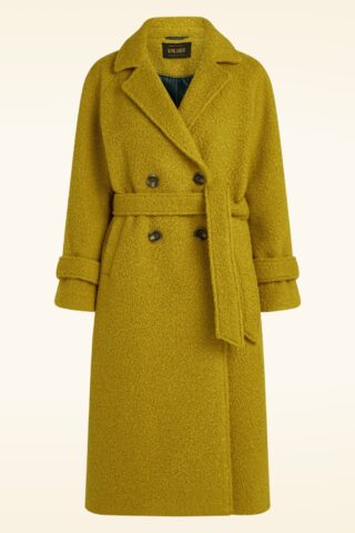 “Bouclé warmth, effortlessly bold.” Deze lange mantel is niet alleen prachtig om te zien, maar houdt je ook nog eens heerlijk warm. Ze heeft een klassieke reverskraag, handige zijwaartse steekzakken, een dubbele knopenrij en een afneembare strikband die je taille mooi definieert. Uitgevoerd in een zware, gerecyclede, currygele bouclé stof (stretcht niet) die volledig is gevoerd met een satijnachtig stofje. * Gevoerd * Gerecyclede stof * Reverskraag * Lange mouwen * Afneembare strikband * Steekzakjes * Dubbele knopenreeks * Valt over de knie bij een lengte van 1,70 m