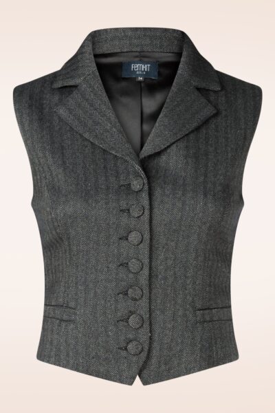 “Elegance, tailored to you!” Dit giletje is een must-have voor wie tijdloze elegantie met een moderne twist wil combineren. Klassieke details zoals een reverskraag en stoffen knopen maken ‘m verfijnd, terwijl de hoogwaardige stof met subtiel visgraatmotief en de slanke, vrouwelijk aansluitende pasvorm voor een elegante uitstraling zorgen. * Ietwat korter model * Revers kraag * Gevoerd * Mouwloos * 2 decoratieve paspelzakjes * Knoopsluiting * Maak je look compleet en combineer haar met de bijpassende Bonny High Waist pantalon in donker antraciet