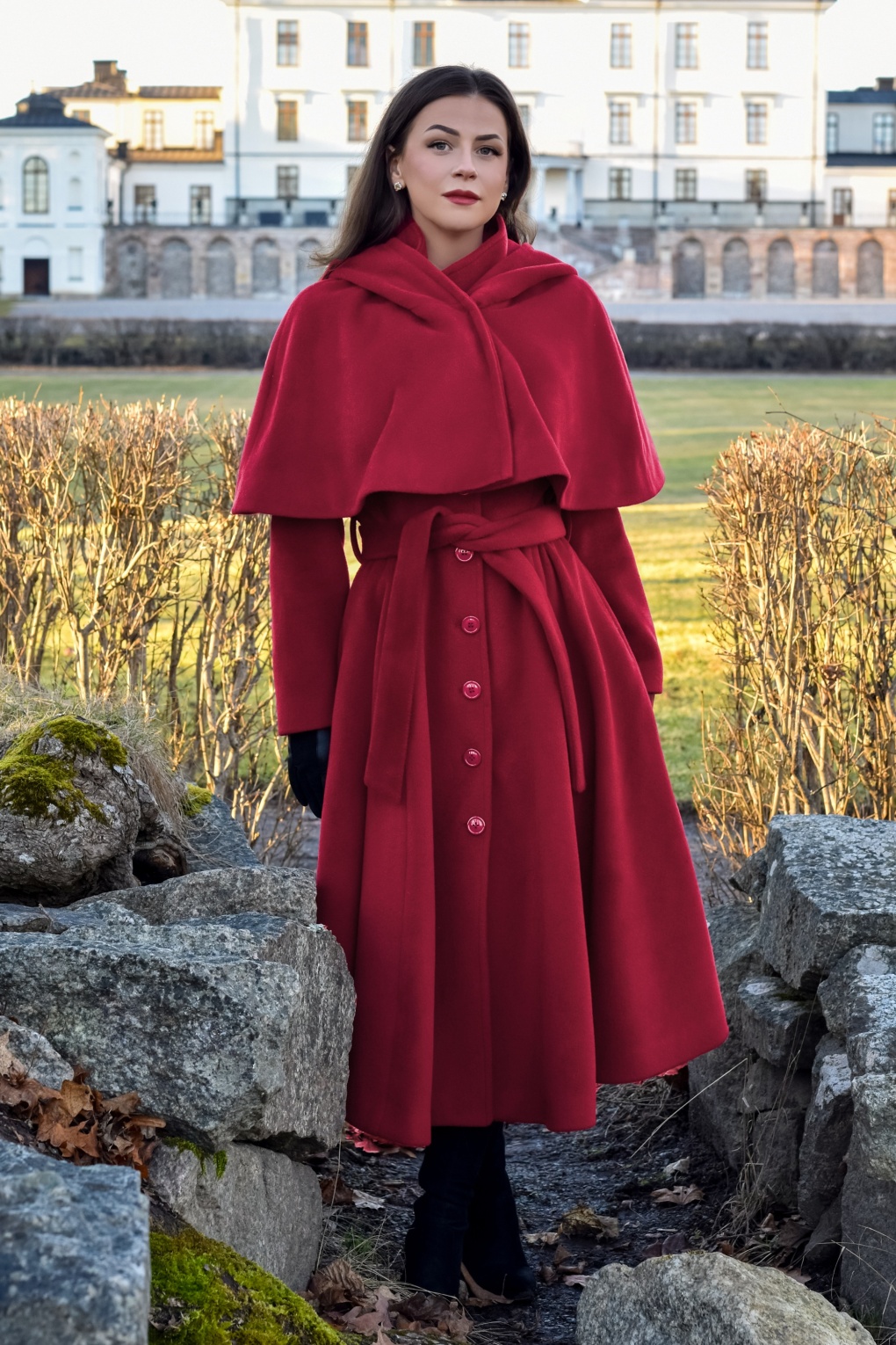 ”Not lost in the woods, just turning heads!” 😉 Deze Fairy Tale swing jas is exclusief bij Topvintage verkrijgbaar en geïnspireerd op niemand minder dan roodkapje. Een sprookje om te zien, maar ze houd je ook nog eens heerlijk warm tijdens de koude dagen! Ze heeft een knopenreeks, een capuchon en een afneembare cape voor wat extra drama. Uitgevoerd in een luxueuze, ietwat dikkere, zachte rode stof (stretcht niet) die volledig is gevoerd. ”Don’t follow the path, be the story!” * Swing model * Knopenrij * Geheel gevoerd * Capuchon * Afneembare cape * Voorzien van zakken! * Afneembare strikband voor een extra ‘snatched’ taille * Valt bij een lengte van 1,70 m ruim over de knie * Exclusief bij Topvintage verkrijgbaar