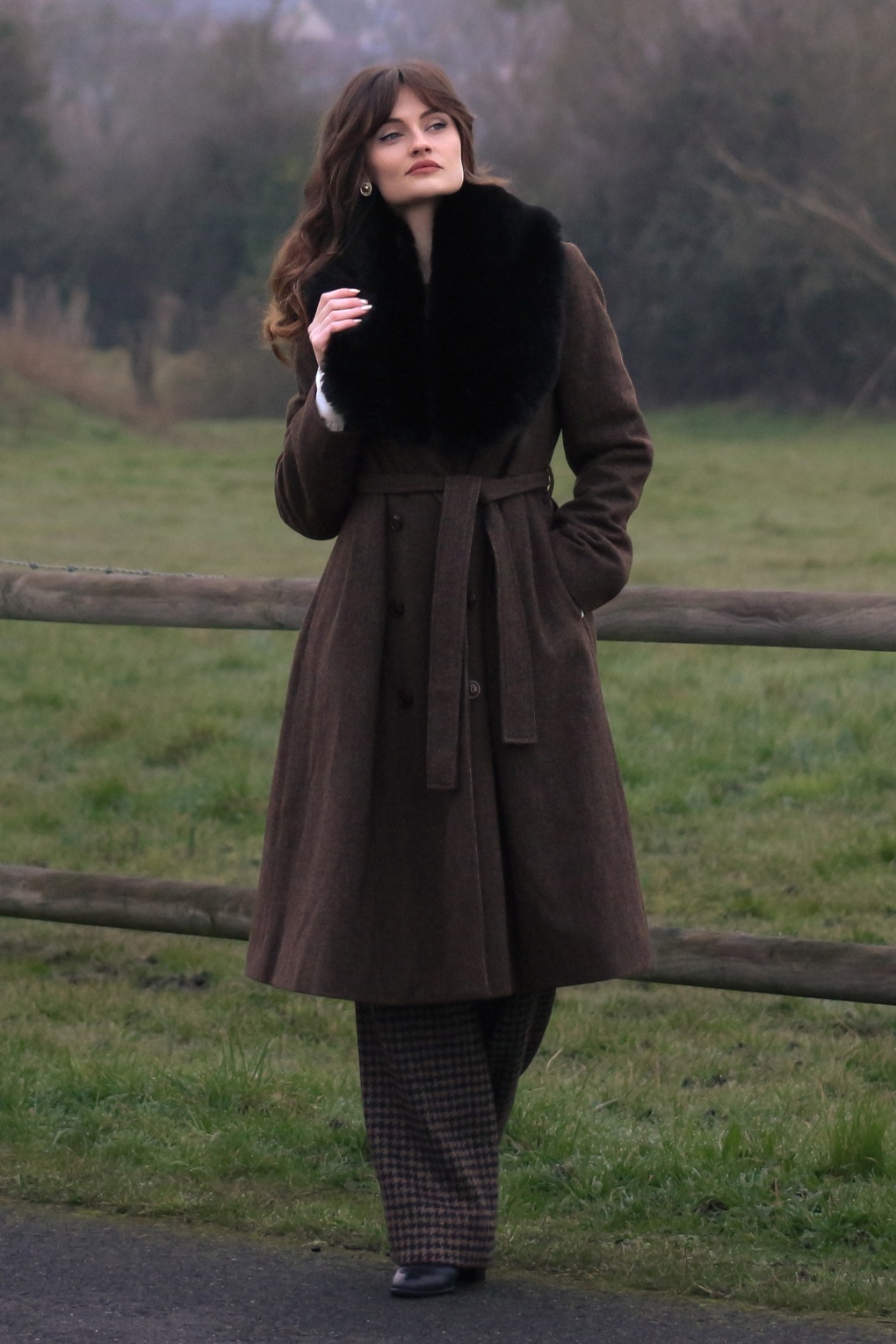 ”A whisper of warmth, wrapped in class and grace!” Deze mantel is exclusief bij Topvintage verkrijgbaar en niet alleen prachtig om te zien, maar ze houdt je ook nog eens heerlijk warm! Uitgevoerd in een luxueuze, ietwat dikkere, donkerbruine wolmix (stretcht niet) met een ruitjesmotief die volledig is gevoerd voor extra comfort.  * A-lijn model * Dubbele knopenrij * Geheel gevoerd * Afneembare zwarte kraag van imitatiebont  * Lange mouwen  * Voorzien van zakken * Afneembaar striklint voor een ‘snatched’ taille * Valt over de knie bij een lengte van 1,70 m * Exclusief bij Topvintage verkrijgbaar